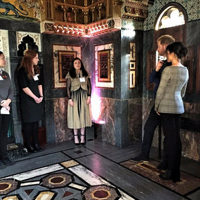 Сначала пара отправилась в тур по Кардиффскому замку, где им рассказали про историю города, угостили традиционным уэльским пирогом, а также спели уэльскую песню о любви. Кто-то слышал, как принц сказал Меган, что самое лучшее пение можно услышать в Уэльсе.